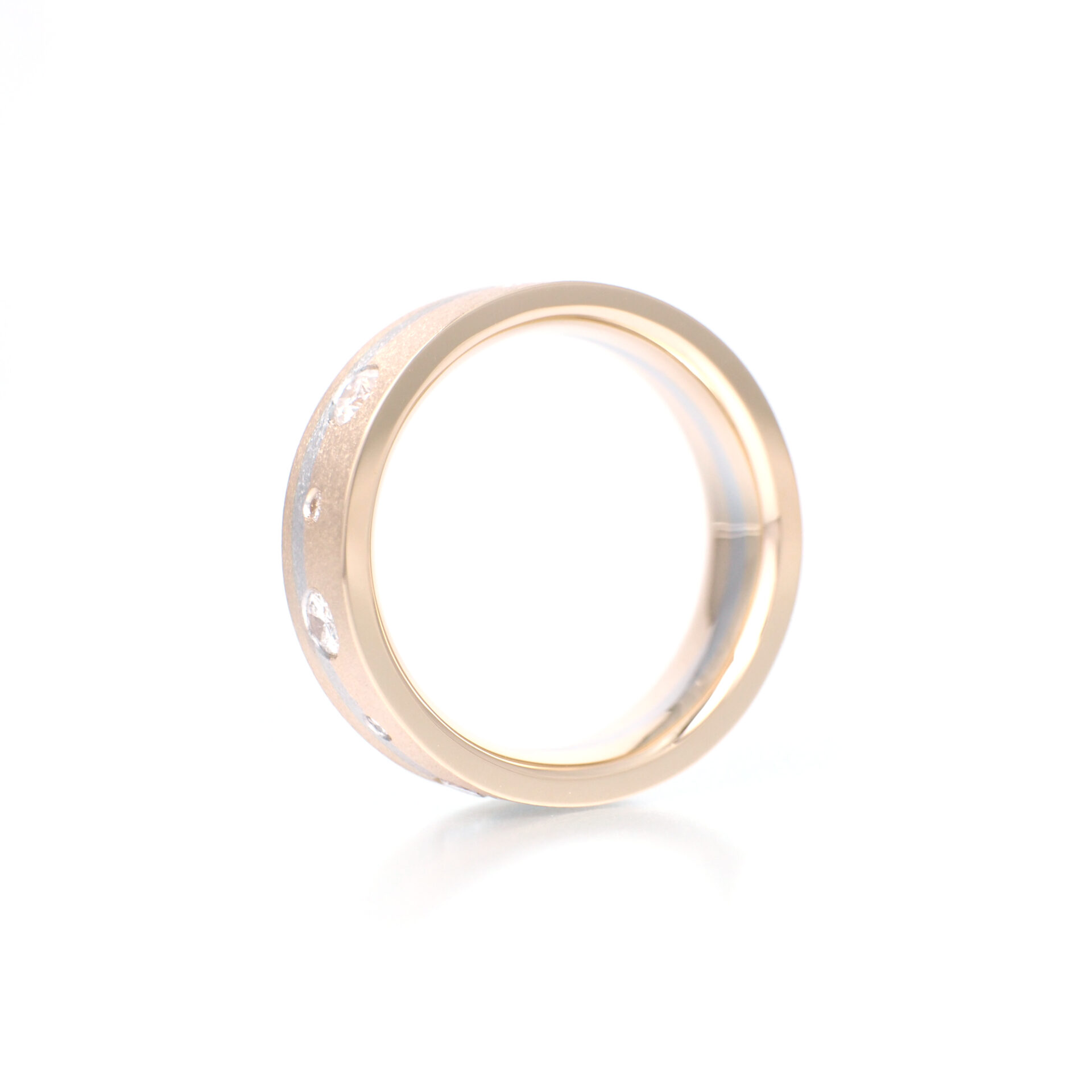 The outside of the ring is given a matte texture to contrast with the brilliance of the diamonds.