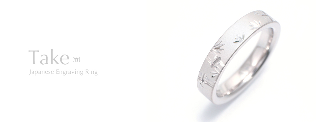 Take[竹]: Bamboo – Japanese Engraving Ring, width-4mm Pt900, K18, Sterling Silver 925