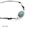 The glass ball provided by a glass artists, Tomoe Tanimura, was made into a pendant with the silk braid of the braid shop in Iga.